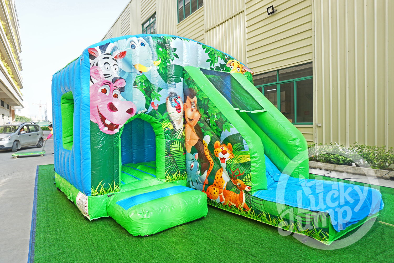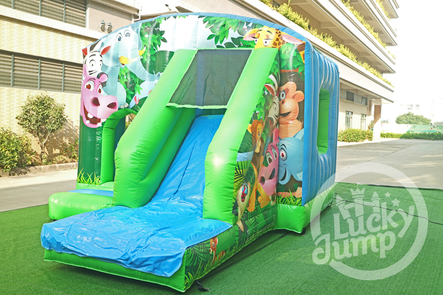 Bright and Colorful Safari Themed Bounce House for Outdoor Events