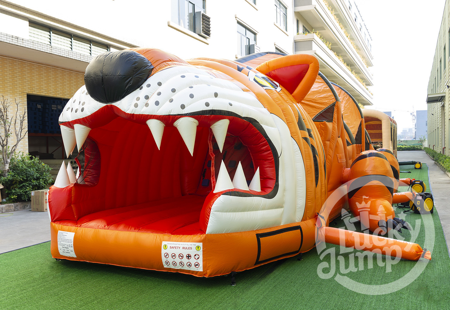 Make your event unforgettable with our Inflatable Tiger Obstacle Course, a high-energy outdoor attraction designed for family events, corporate team-building, and community festivals. Combining excitement with safety, it delivers hours of fun in a vibrant tiger-themed adventure world.