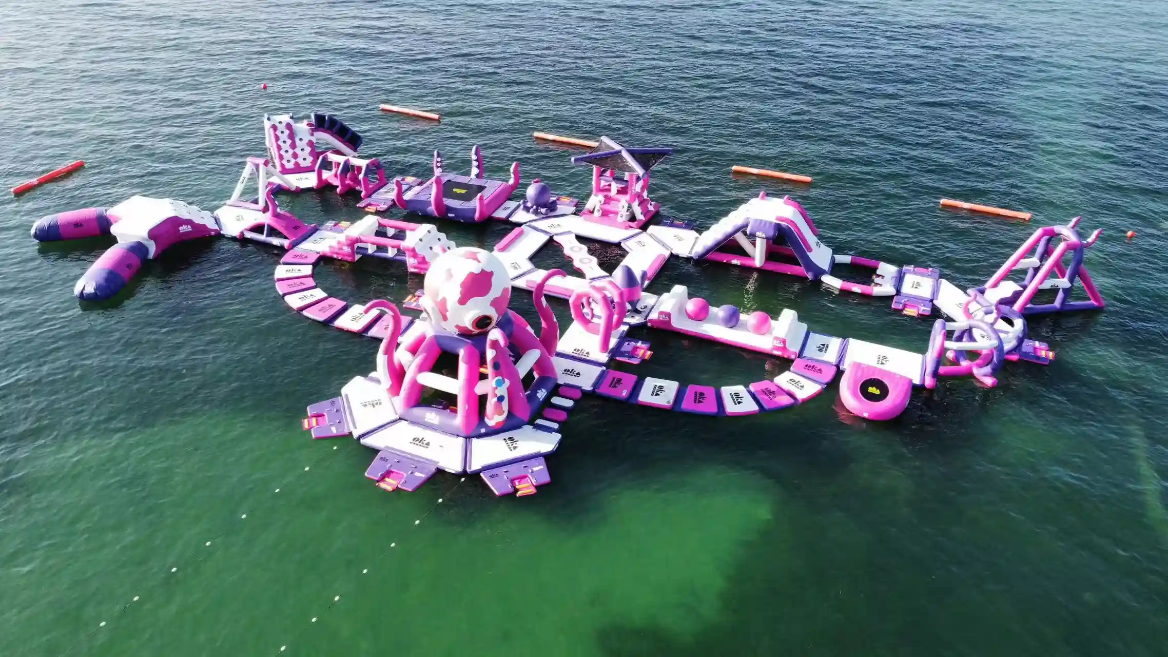 Công viên nước bơm hơi màu hồng này có nhiều cầu trượt bơm hơi, tường leo, xà thăng bằng, bục nhảy và các thử thách vượt chướng ngại vật tương tác – tất cả được tích hợp vào thiết kế mô-đun để dễ dàng lắp đặt, vận chuyển và cấu hình lại. Màu hồng và tím tươi sáng thu hút sự chú ý ngay lập tức, lý tưởng cho việc xây dựng thương hiệu, chụp ảnh và tương tác trên mạng xã hội.