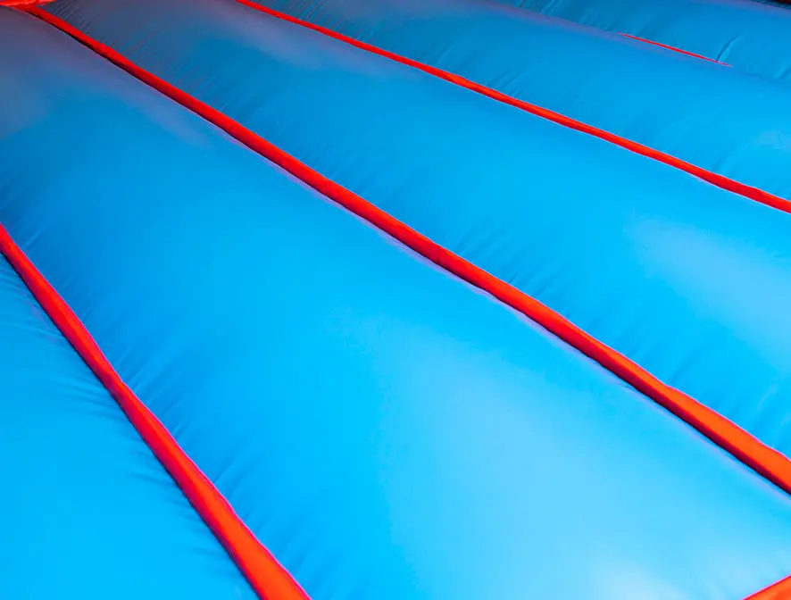 Casi todas las áreas en las que sus clientes pisan, se deslizan o trepan están cubiertas por una cubierta de vinilo reemplazable y fácil de quitar. Desde los escalones, hasta las mangas de entrada y las superficies de deslizamiento, Pango Inflatable solo vende productos diseñados para soportar un alto volumen de uso.