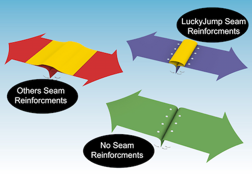 Todos nuestros productos tienen una solapa de seguridad interna cosida, en caso de sobrecarga durante el uso, evita que el aire salga rápidamente, dando suficiente tiempo al jugador para escapar.